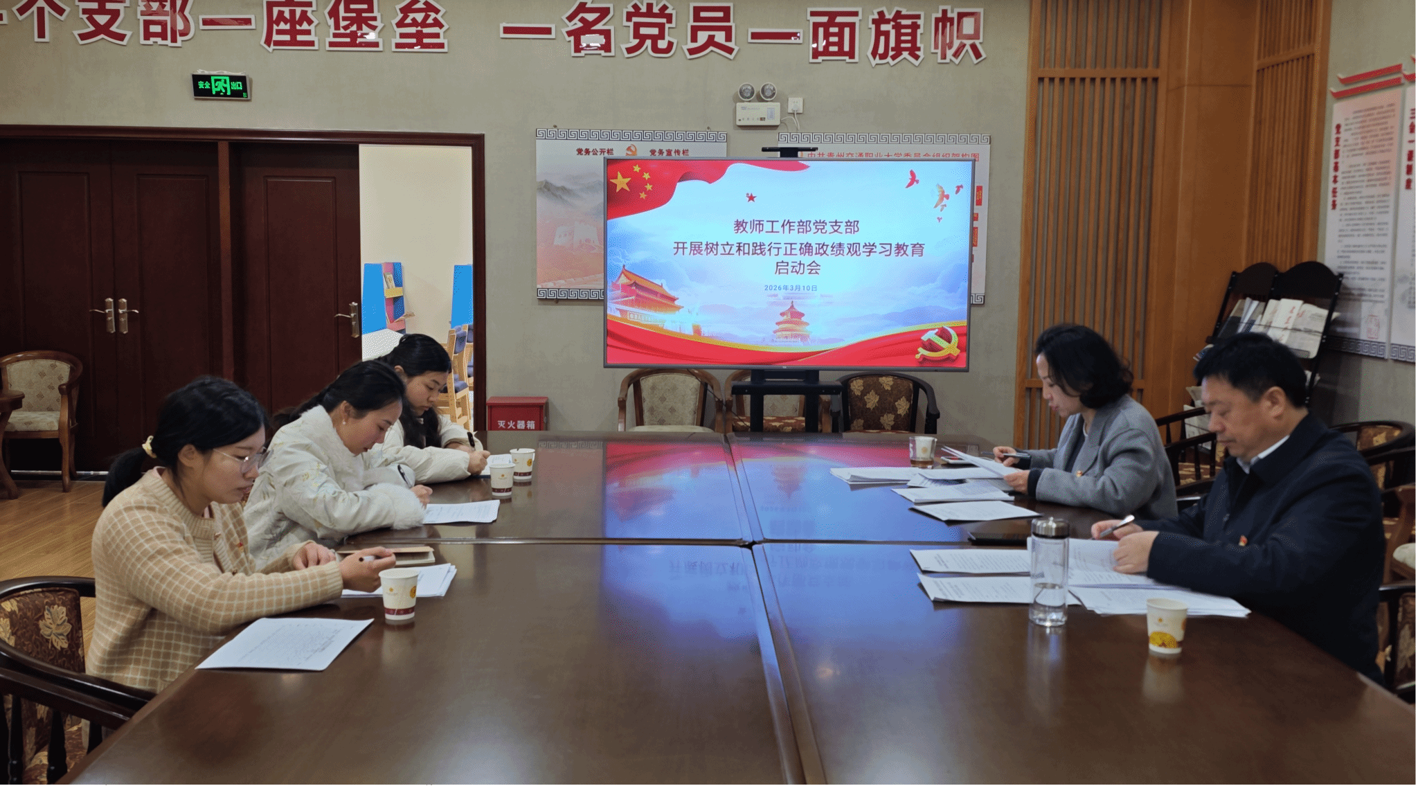 为深入贯彻落实中央、省委及学校党委关于树立和践行正确政绩观学习教育的工作部署,切实把全体党员的思想和行动统一到上级决策部署上来,3月10日,教师工作部党支部召开了树立和践行正确政绩观学习教育启动会,支部全体党员参会。